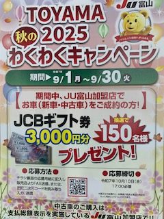 TOYAMA2025 秋のわくわくキャンペ-ンがR7.9.1-R7.11.30